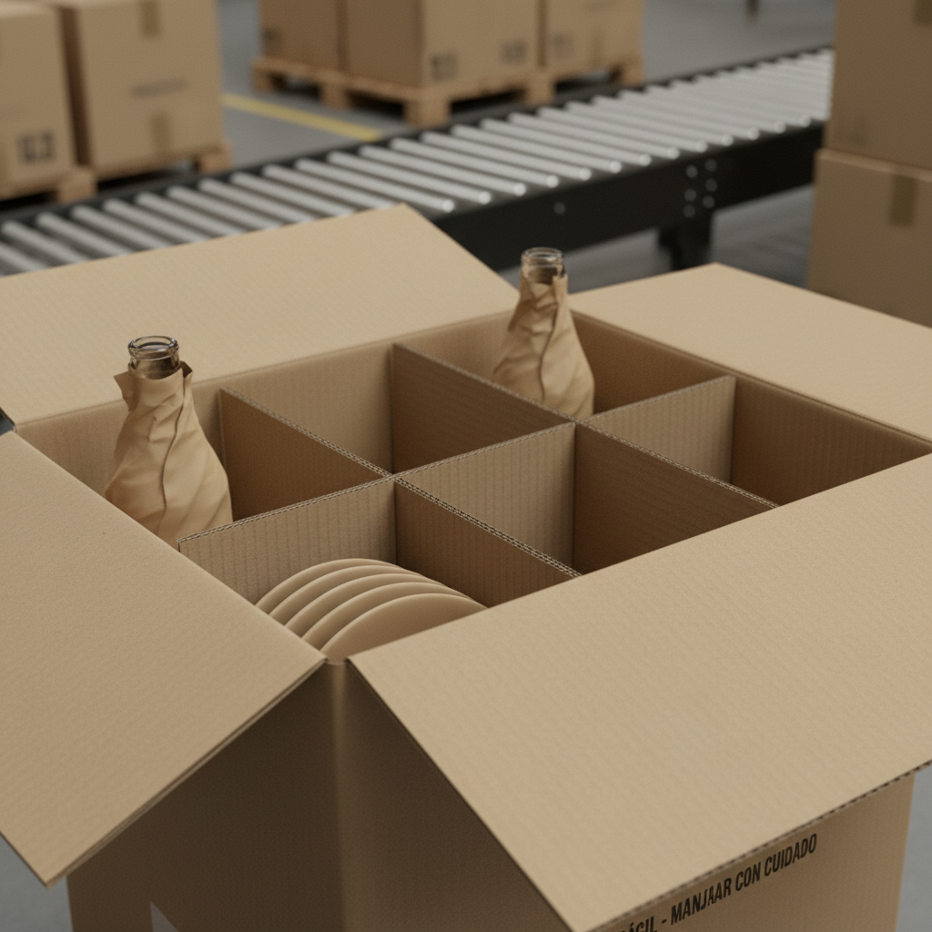 También influye el modo de envío. En envíos sobre palet, la caja suele estar mejor soportada y sufre menos agresiones puntuales, por lo que puede requerirse una protección más moderada. En cambio, los envíos por mensajería, con múltiples manipulaciones y cambios de vehículo, exigen divisores más robustos y un diseño de celdillas más ajustado para evitar daños por golpes o caídas (estic-maillot.com).